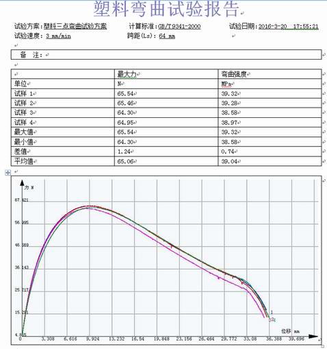 工程塑料三點(diǎn)彎曲試驗(yàn)報(bào)告GB/T 9341-2000